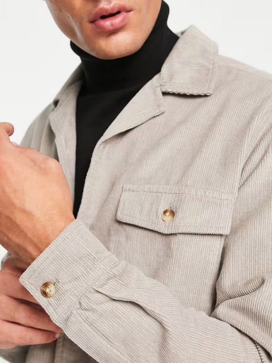 ASOS DESIGN - cord overshirt in mushroom