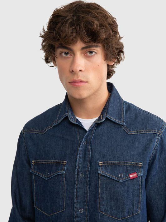 BIG STAR - Regular fit Button Up Shirt ' CHUCK ' in Dark Blue