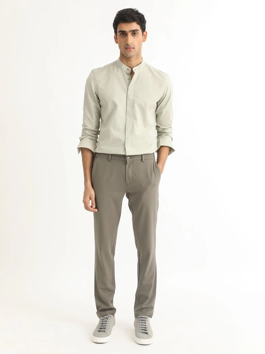 Rare Rabbit - MANDARIN COLLAR REGULAR FIT DOBBY SHIRT CADMI-25 - GREEN