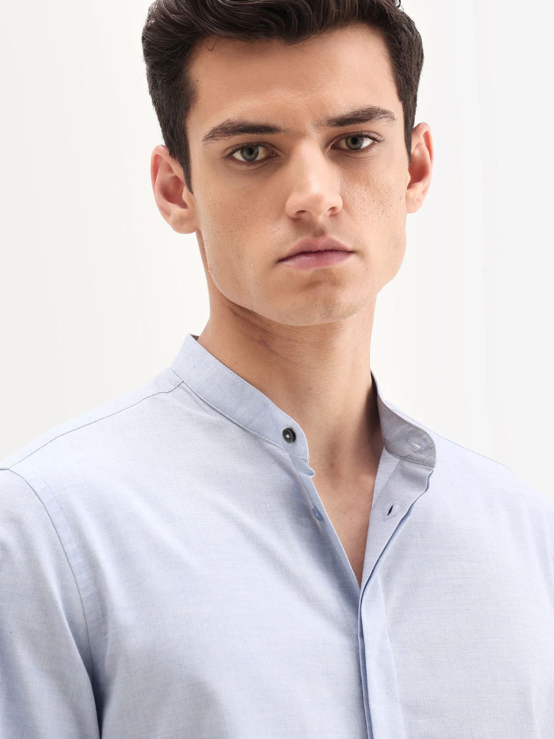 Rare Rabbit - MANDARIN COLLAR REGULAR FIT DOBBY SHIRT CADMI-25 - BLUE